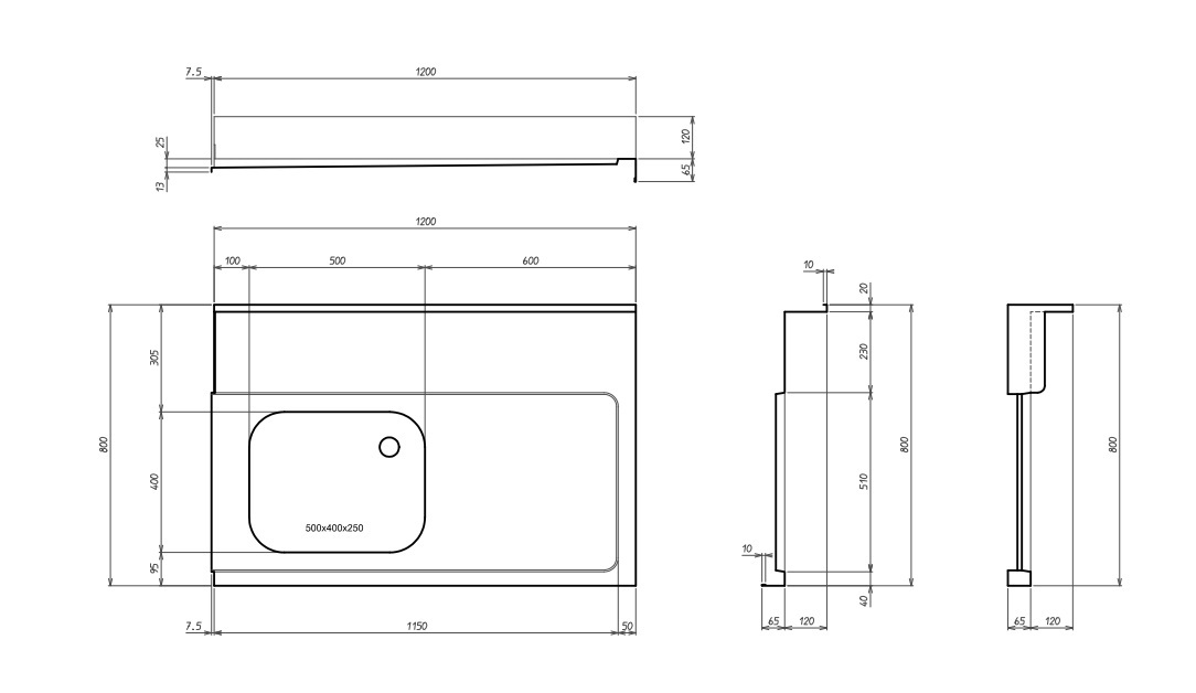ZULAUFTISCH GRUNDBODEN 1200 RECHTS FÜR 7082.0070 - 0075