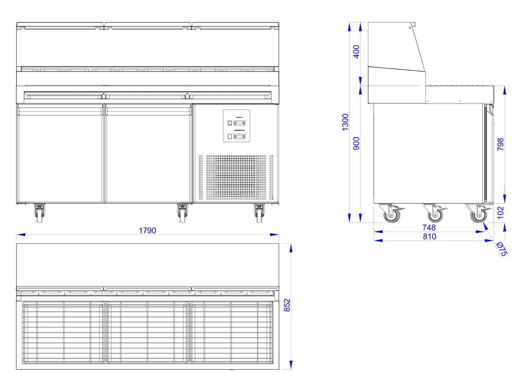 PIZZA COUNTER 2 DOORS 9x 1/3GN CONTAINER