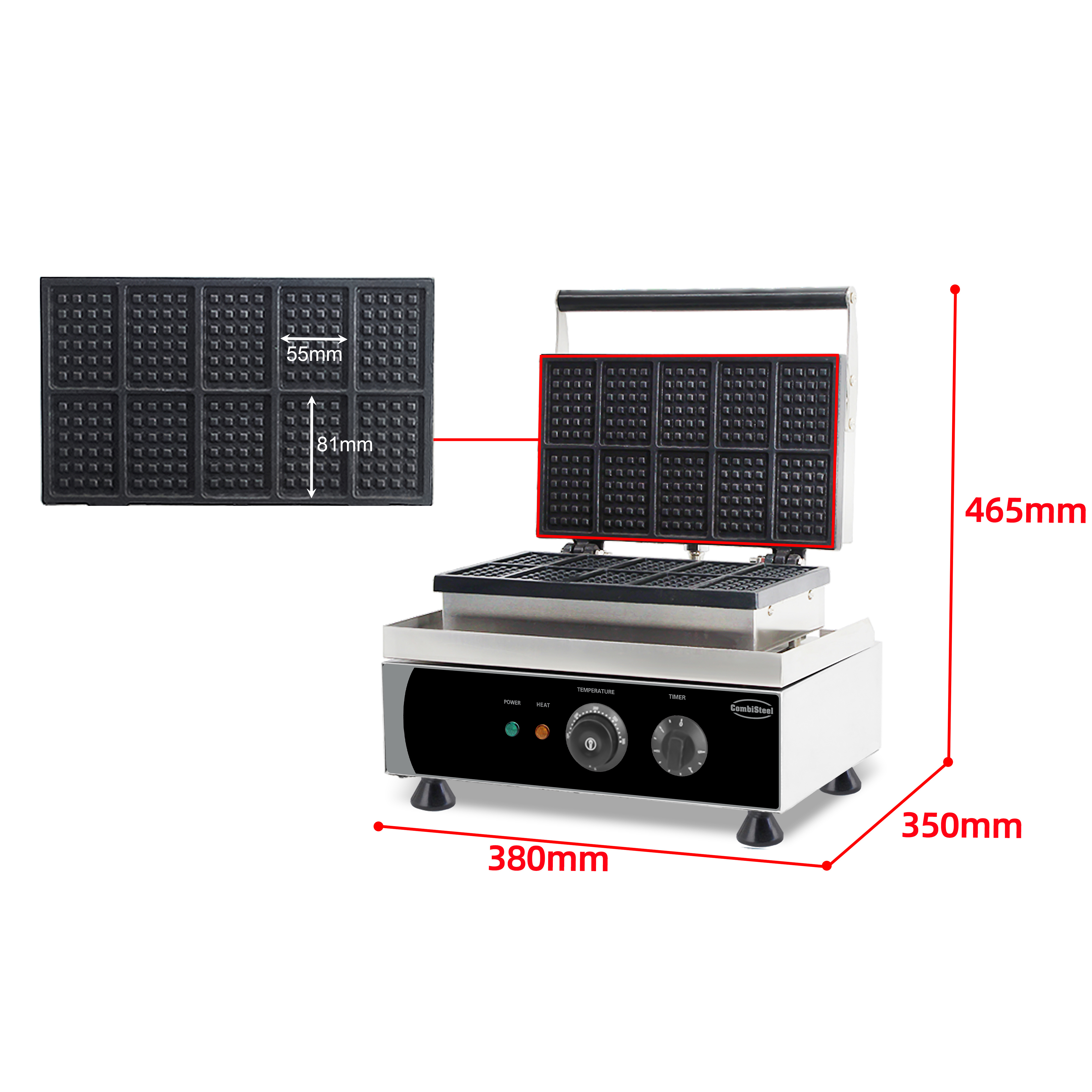 - Capacité de 10 petites gaufres : idéal pour une production rapide et constante.