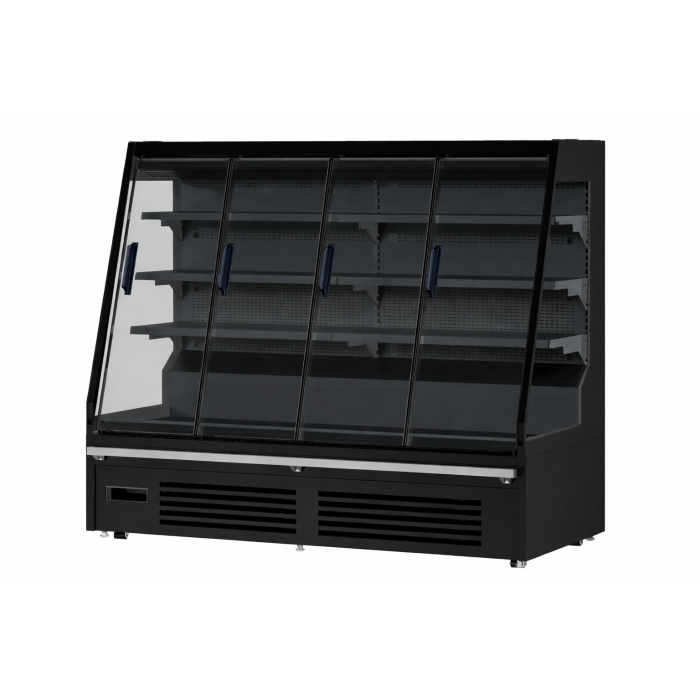 De wandkoeling Maikel 1.9 is een stijlvolle en praktische koeloplossing voor supermarkten, horecazaken en winkels waar gekoelde producten aantrekkelijk gepresenteerd moeten worden. Dankzij de geventileerde koeling blijft de temperatuur gelijkmatig verdeeld, zodat producten optimaal gekoeld blijven. De zwarte afwerking geeft de koeling een moderne uitstraling die perfect past in professionele verkoopomgevingen. Met een royale inhoud van 460 liter en vier schuifdeuren biedt deze wandkoeling extra opslagruimte terwijl producten overzichtelijk en goed bereikbaar blijven. Afmetingen: 1935x740x1500 mm (LxBxH) – Vermogen: 0,8 kW – Temperatuur: -1/+5 °C – Inhoud: 460 liter – Gewicht: 310 kg.