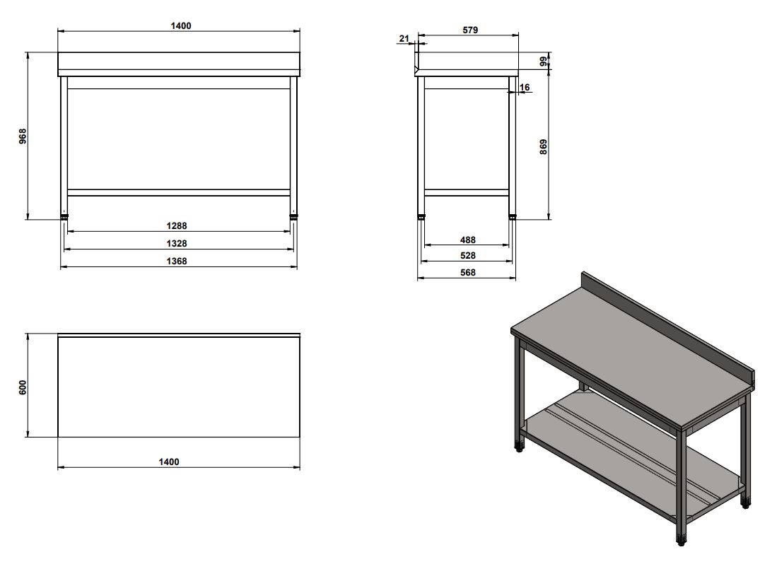 600 WERKTAFEL BODEMSCHAP RAND DEMONTABEL 1400