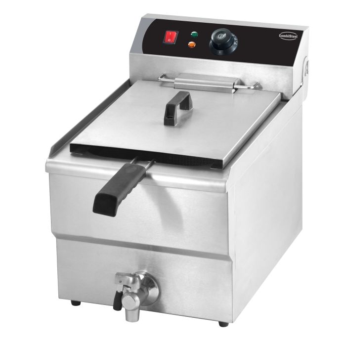 Deze Combisteel elektrische tafelfriteuse is speciaal ontworpen voor professionele keukens, buffetten, catering en evenementen. Met een ruime capaciteit van 10 liter kan je makkelijk grote hoeveelheden voedsel bereiden, ideaal voor drukke momenten. Het compacte ontwerp past in iedere keukenopstelling, terwijl de robuuste roestvrijstalen constructie en krachtige prestaties zorgen voor knapperige en perfect gefrituurde gerechten. De afmetingen zijn 340x560x380 mm (LxDxH) - spanning 400 Volt - vermogen 5 kW - inhoud van 10 liter - gewicht 11.5 kg.
