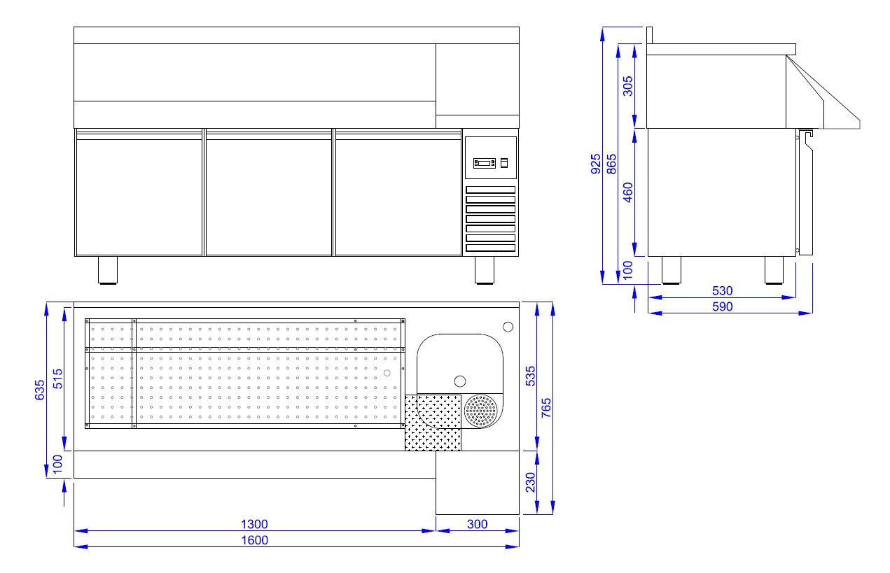 De gekoelde cocktail bar station met 3 deuren is ideaal voor professionele bartenders en biedt alles wat je nodig hebt voor het bereiden van de perfecte cocktails. Aan de voorzijde bevindt zich een handige ‘speedrail’ voor snelle toegang tot flessen, en een schap biedt ruimte voor een blender. Daarnaast wordt het station geleverd met een kraan, spoelbak, glazenspoeler, snijplank en stopcontact bij het schap voor het aansluiten van de blender. Het geventileerde koelsysteem zorgt voor efficiënte koeling, terwijl automatische ontdooiing het onderhoud minimaliseert. De afmetingen zijn 1600x760x1000 mm (LxDxH) - verbruik 0.32 kW - inhoud 280 liter - temp. +2/+8ºC - gewicht 125 kg.