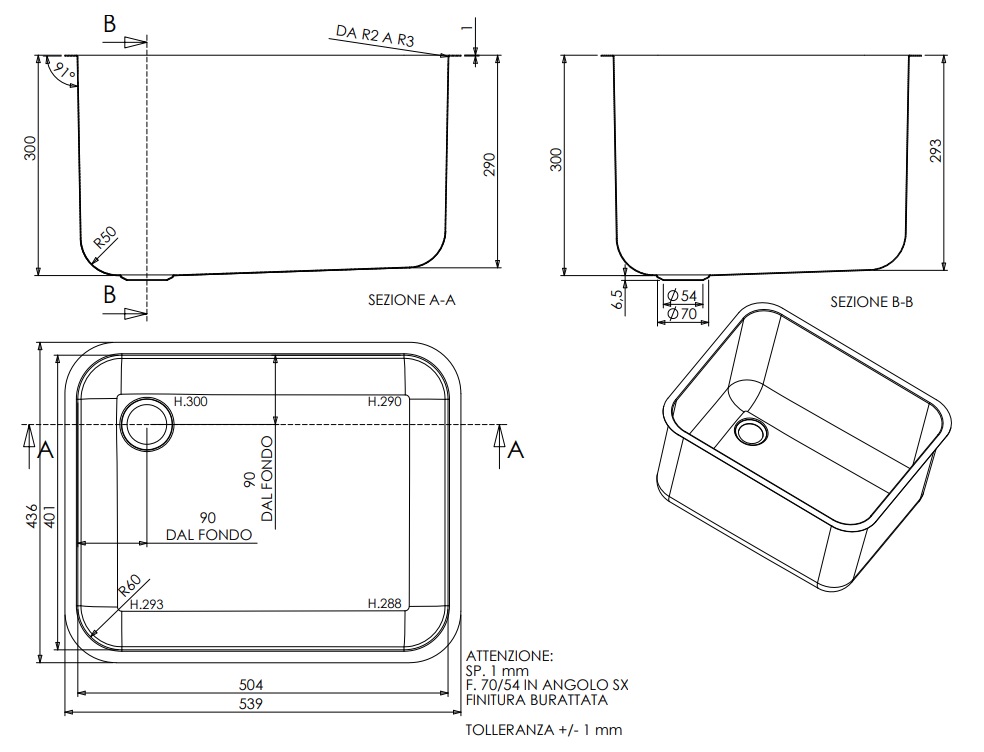 SPOELBAK 500X400X300