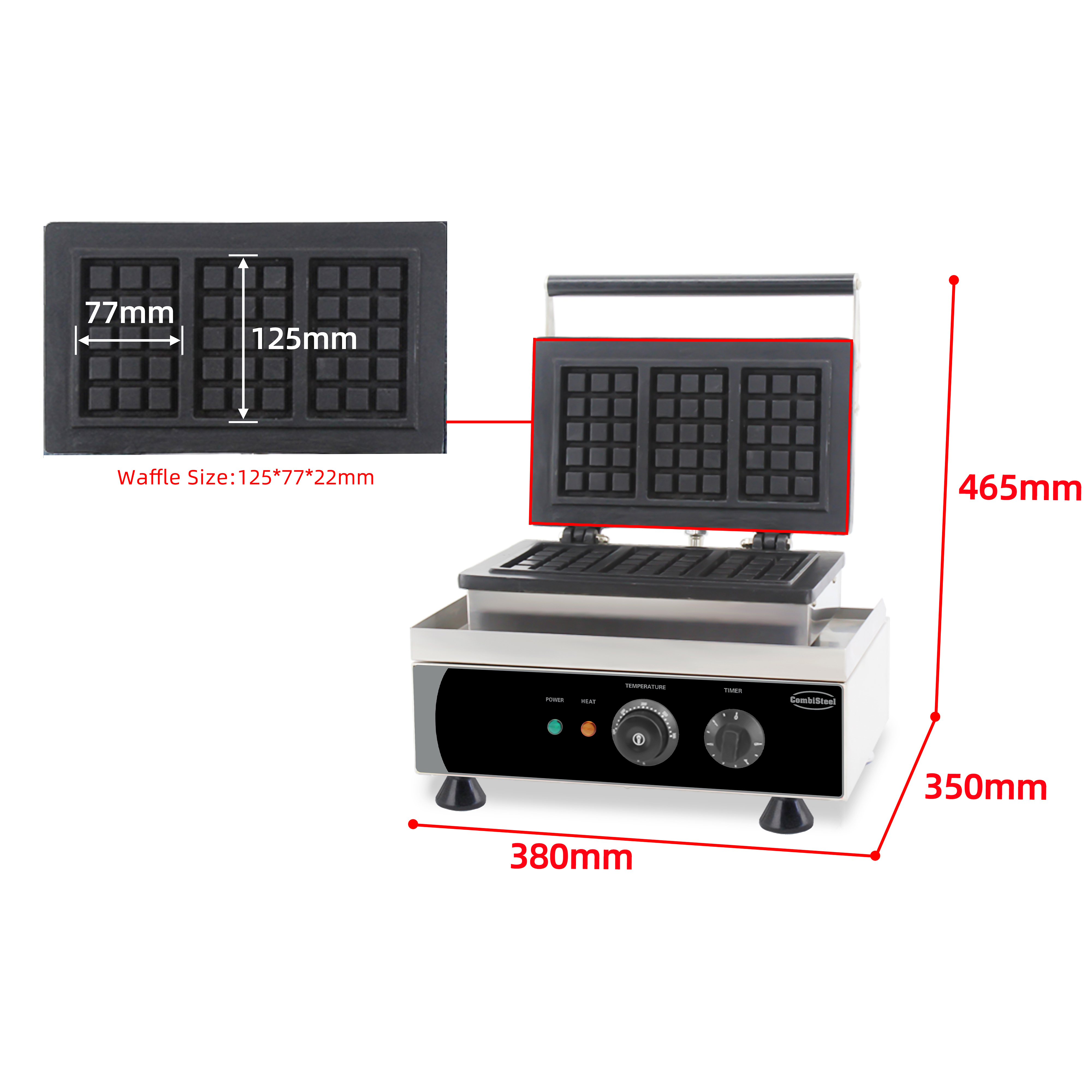 - Capaciteit van 3 wafels: ideaal voor een snelle en consistente productie.