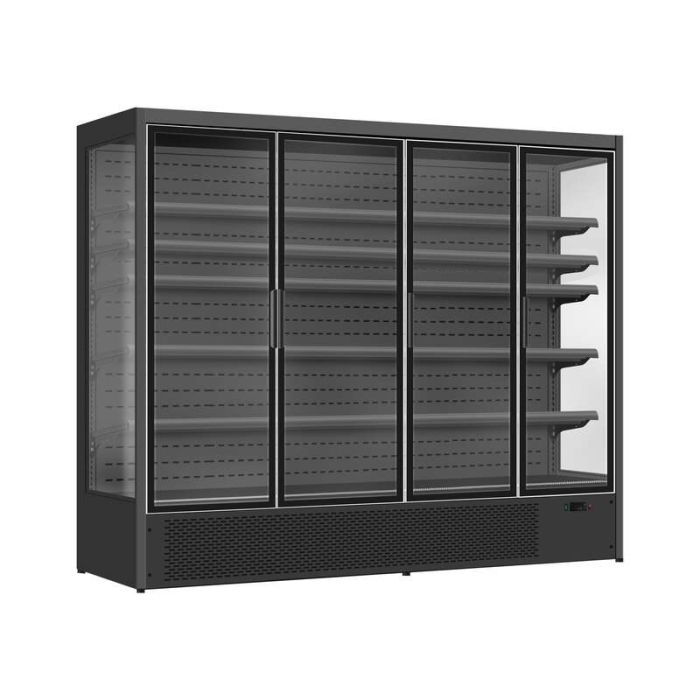 De Wandkoeling Luke 2.5 is een krachtige en stijlvolle koeloplossing voor het professioneel presenteren van gekoelde producten met maximale capaciteit. Dit vrijstaande model in zwarte uitvoering is perfect voor supermarkten, groothandels en drukke selfserviceomgevingen waar veel volume gekoeld en overzichtelijk gepresenteerd moet worden. Dankzij de geventileerde koeling, automatische ontdooiing en LED-verlichting blijven producten altijd optimaal gekoeld en aantrekkelijk zichtbaar. De zelfsluitende deur met dubbelglas zorgt voor efficiënt energiegebruik en gebruiksgemak. Afmetingen: 2508x720x2030 mm (BxDxH) – verbruik 1,2 kW – inhoud 2000 liter – temperatuur +2/+10°C – gewicht 380 kg.